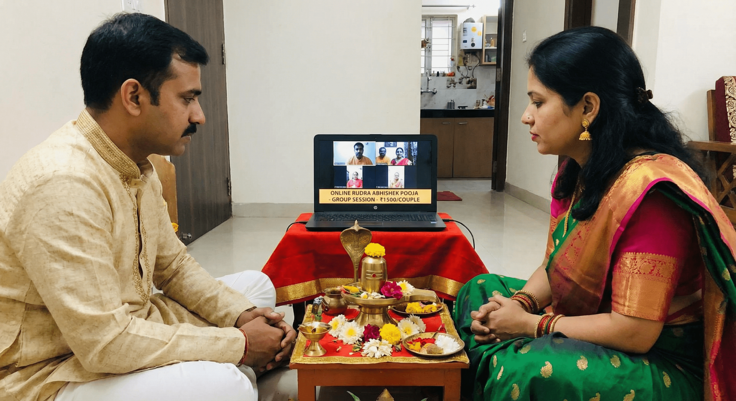 - Two family members (e.g., husband–wife, siblings, parent–child) wish to perform Rudra Abhishek together